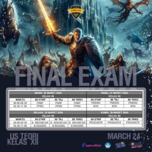 Berdasarkan Program Kalender Pendidikan Tahun Ajaran 2023/2024, maka kami sampaikan informasi pelaksanaan Ujian Sekolah kelas XII Tahun Ajaran 2023/2024,