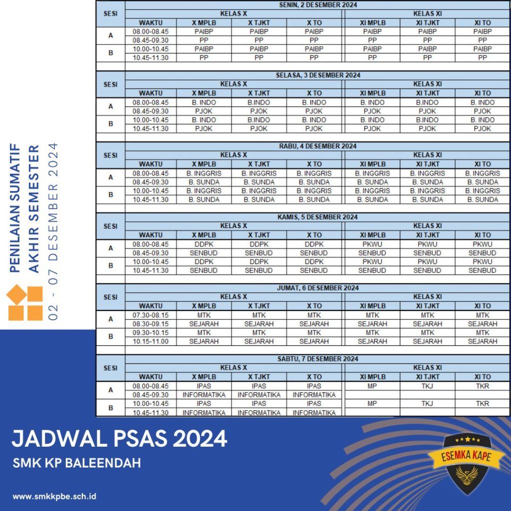 Jadwal Penilaian Sumatif Akhir Semester (PSAS) Ganjil 2024